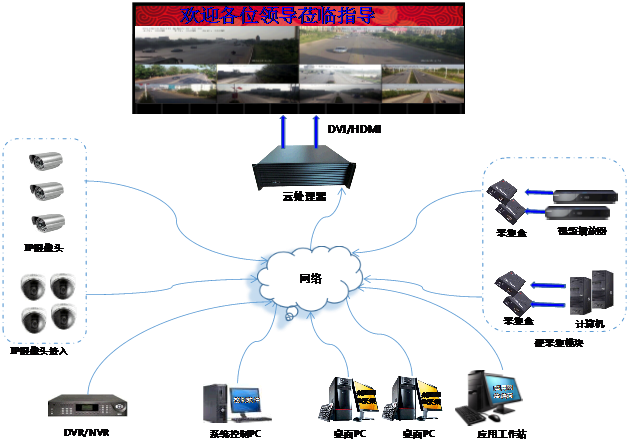 3 支持DVI\VGA\HDMI\SDI\YCrCb\CVBS分布式接入顯示