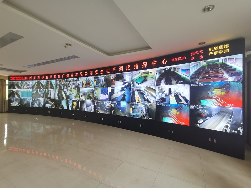 山西華瀛天影集廣煤業LG55寸3.5mm3*12落地弧形機柜案例展示