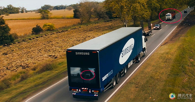 三星近期推出了一款"2X2拼接屏安全卡車",該卡車可以在后車試圖超車時給予安全提示,以減少車禍發生。該卡車尾部巨大的液晶屏實時顯示前方道路情況,當后車試圖借道超車時就可以從屏幕中看到對向是否有車正迎面駛來。